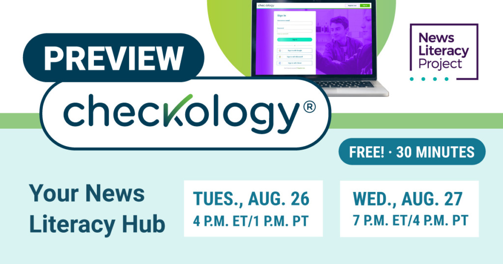 Since 2016, the Checkology® virtual classroom has been the News Literacy Project’s flagship resource for educators, packed with standards-aligned,…