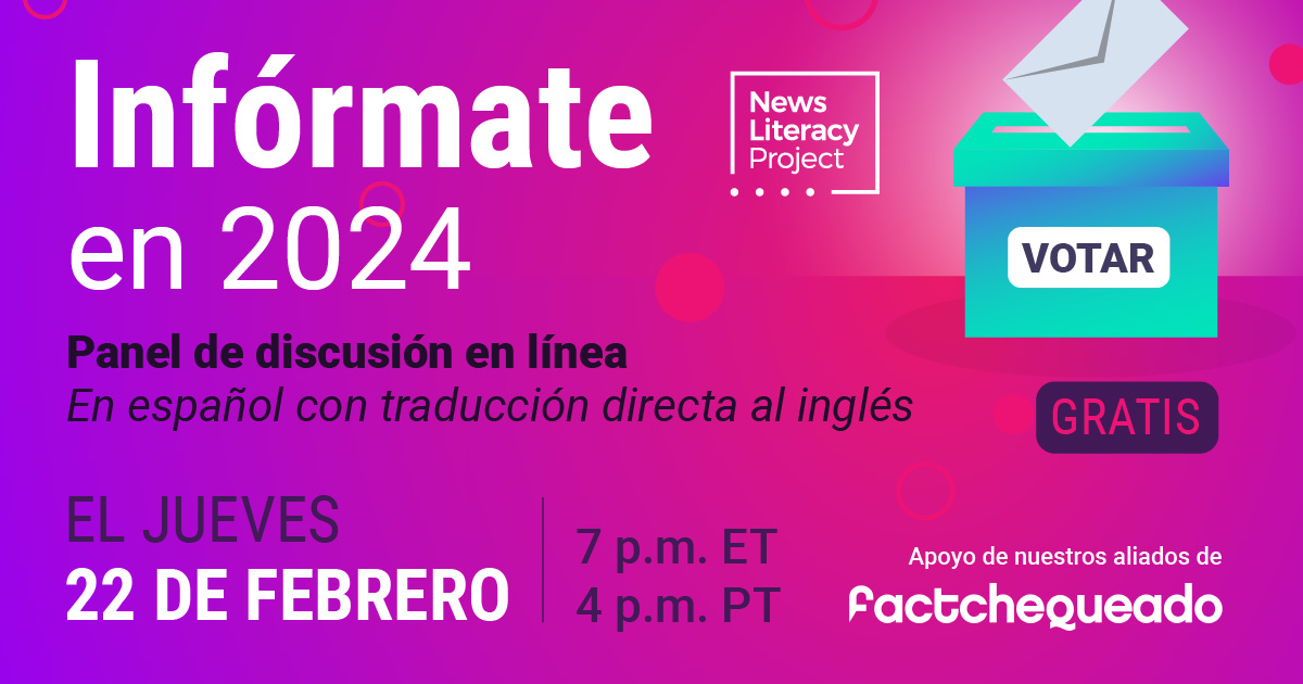 Spanish-speaking Americans are at high risk for mis- and disinformation during the 2024 elections. From erroneous WhatsApp messages to incorrectly subtitled social media videos, false rumors and attack ads, Hispanics and Latinos are targeted by bad actors who seek to disrupt voting and sow mistrust and confusion around election systems. The News Literacy Project is hosting a panel of journalists and experts to help us understand why and how Spanish speakers are at greater risk. We will learn about common trends and tropes in disinformation that target Hispanics, discuss ways everyone can avoid being misled during the 2024 elections, and explain how to find credible, trustworthy information.