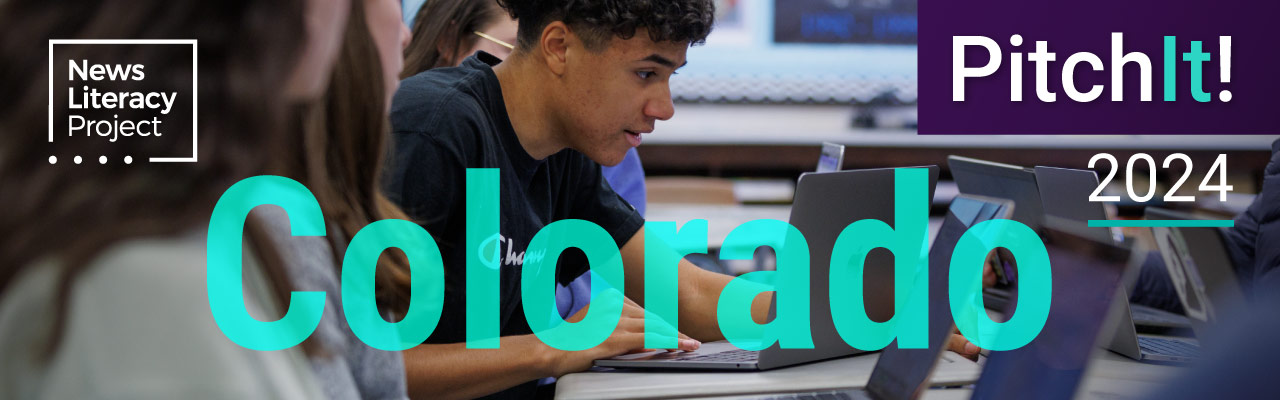 For this project, middle and high school students will write an essay in response to one of the news literacy writing prompts, using a news article as inspiration. Submitted essays will be judged by NLP ambassadors. Selected first- through third-place essay contest finalists (three from middle school and three from high school) will earn the opportunity to compete at the PitchIt! Colorado State Finals event.