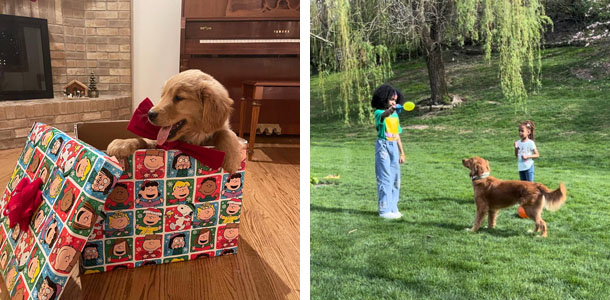 I was the last person in our home to warm up to the idea of having a pet, especially a furry one. I was fine with a fish, but that was about it. Now, I’m happy to say, I’m officially team dog! When we got our golden retriever, Charlie Brown (or Charlie, Chuck, or Charles, depending on what he’s getting into) he was a tiny little guy who fit inside a box and was a Christmas gift for my daughters. He’s since become their best friend! Having a dog has been a huge learning curve—almost as big as Charlie is now—but he has definitely found his place in our family, and we love him to pieces.