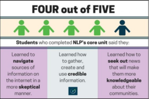 In the most recent survey, students also reported that NLP lessons made them more likely to post a comment on a blog (40 percent), ask a news organization to correct a factual error (41 percent) and vote in a local, state or national election when they are old enough to do so (62 percent).