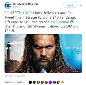 Sometimes, the engagement bait is being used to promote a legitimate business or a cause — a form of viral social media marketing. Here’s an example from the DC Extended Universe, promoting the movie Aquaman:
